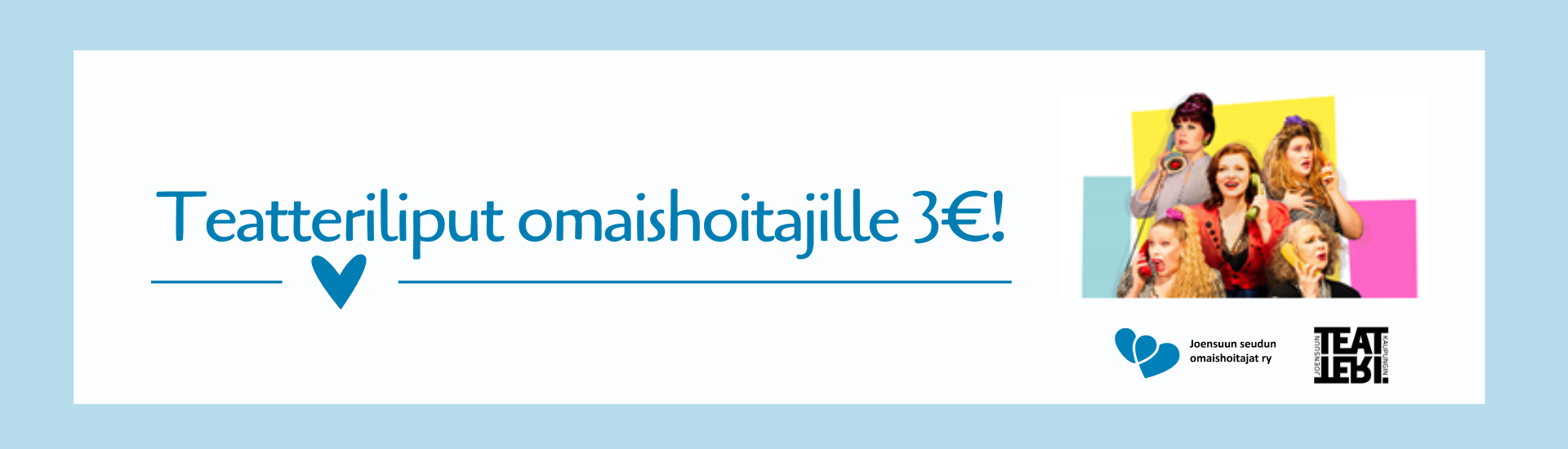 Joensuun kaupunginteatteri tarjoaa omaishoitajille teatterilipun 3 euron ostohintaan esityspäivinään.